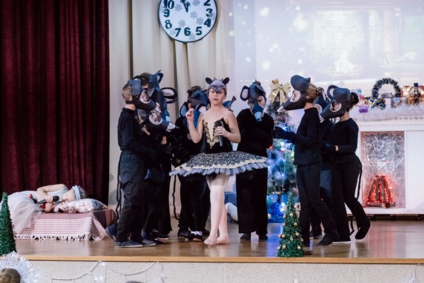 21.01.2025. Театрализованное представление-мюзикл ''Щелкунчик''. 27 декабря состоялись новогодние праздники для всех ребят нашей школы. Началось празднование с театрализованного представления-мюзикла «Щелкунчик». Ребята долго и усердно готовились к премьере, поэтому результат получился восхитительный. В спектакле участвовала вся начальная школа и ребята из среднего и старшего звена. Покорили зрителей милые ангелочки, маленькие снежинки и снеговики из 1 класса, замечательные герои Мари и Франц с крестным Дроссельмейером, ожившие по волшебству куклы и солдатики с их предводителем Щелкунчиком. Ребята из школьного хора проникновенно спели гимн Рождеству «О, Ёлочка!». Второклассники слаженно и талантливо сыграли мышиное войско во главе с королевой Мышильдой. И поэтому отрицательные персонажи очень запомнились публике. Финальную песню исполнял весь зал вместе с Дедом Морозом и Снегурочкой. И конечно же, все с удовольствием водили хороводы, участвовали в конкурсах и получали подарки.