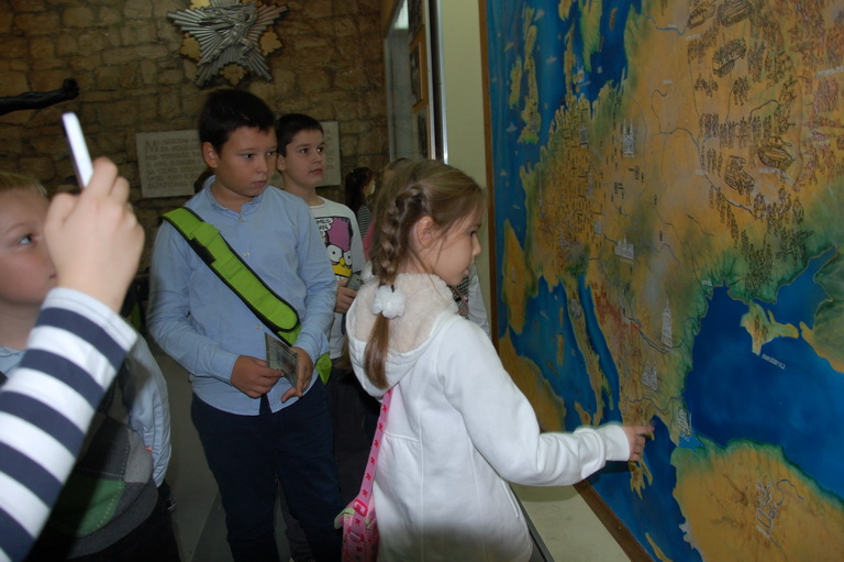 26.09.2014. ЭКСКУРСИЯ В ВОЕННЫЙ МУЗЕЙ 26 сентября обучающиеся 4 класса с классным руководителем и родителями посетили Военный музей г.Белграда. В музее представлено много предметов, оружия времён II Мировой войны. Экскурсовод познакомил детей с историей Великой Отечественной войны, ролью СССР в истории войны. Ребята узнали, как проходило освобождение Белграда от фашистских захватчиков. Своими впечатлениями от поездки делится ученица 4 класса Водякова Ольга: Я была с классом на экскурсии в военном музее города Белграда. Нам рассказывали о Первой мировой и Великой Отечественной войнах, о событиях в это время на территории Сербии. Очень интересно было слушать о героической борьбе народно-освободительных отрядов. В стране действовало до 80 тысяч партизан. На стендах мы видели оружие, форму солдат и карты военных действий. Особенно поразила носовая часть первого партизанского судна «Партизан». Многие бойцы были награждены медалями за храбрость. Это высокая награда в Сербской армии времени ВОВ. Её получили и русские солдаты. 20 октября - 70 лет со дня освобождения Белграда советскими войсками совместно с югославской армией. Наша экскурсия была очень познавательная. Человек создал разнообразные средства для войны, но очень хочется верить, что его будут применять всё меньше. Потому что война - это горе и гибель мирного населения. От нас с вами, ребята, зависит - какой будет Земля. От героев былых времен не осталось порой имён. Те, кто приняли смертный бой стали просто землёй и травой. Только грозная доблесть их, поселилась в сердцах живых. Е. Агранович.