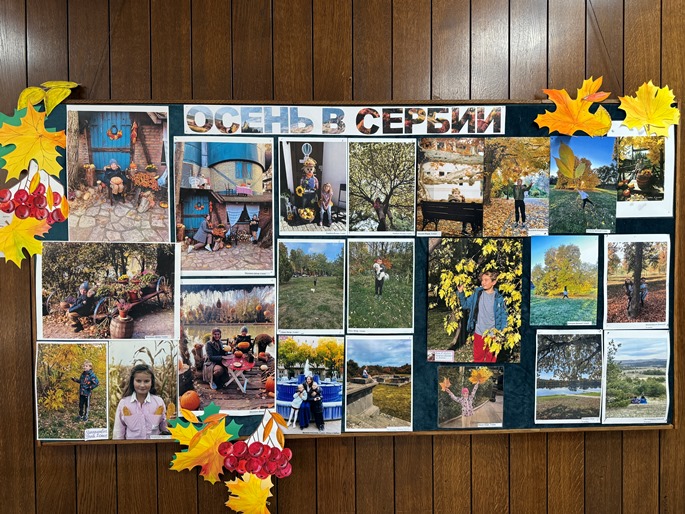 1.11.2025. Выставка «Золотая осень» В нашей школе прошла выставка «Осень в Сербии», на которой ученики представили свои фотографии и осенние букеты. Работы получились очень яркими и красивыми — на снимках золотая листва, тёплое солнце и уютные осенние пейзажи. Букеты из листьев, ягод и цветов наполнили школу ароматом осени и хорошим настроением. Все участники проявили фантазию и творчество, все учащиеся и педагоги с удовольствием рассматривали каждую работу. Спасибо всем ребятам, родителям и учителям за участие и создание такой красивой, вдохновляющей выставки!