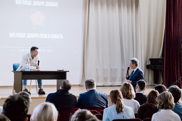 25.11.2025. Встреча с актером Милошем Биковичем В нашей школе прошла незабываемая встреча с известным актёром Милошем Биковичем. Мероприятие собрало полный актовый зал — ученики, педагоги и гости школы с нетерпением ждали возможности пообщаться с артистом, чьи работы давно стали любимыми у зрителей. Милош рассказал о своём пути в кино, первых кастингах, опыте работы в международных проектах и о том, как важно постоянно учиться и развиваться в выбранной профессии После основной части встречи школьники смогли задать свои вопросы. Ребята интересовались секретами актёрского мастерства, подготовкой к ролям, личными увлечениями и планами на будущее. Милош с теплом и юмором отвечал на каждый вопрос, уделив внимание даже самым юным участникам беседы. В завершение встречи многие смогли сфотографироваться с актёром и получить автограф. Атмосфера была по-настоящему вдохновляющей: школьники уходили с ощущением, что мечты действительно можно превратить в реальность. Такие мероприятия становятся важной частью школьной жизни, мотивируя учеников смелее смотреть в будущее и верить в свои возможности.