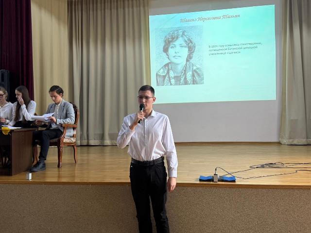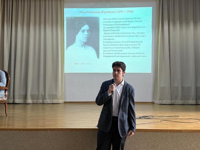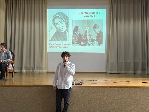 30.11.2025. Ещё жива есенинская грусть... 25 ноября 2025 года в актовом зале школы состоялась литературно-музыкальная гостиная «Ещё жива есенинская грусть», посвящённая 130-летию со дня рождения русского поэта. 3 октября 2025 года культурное сообщество России и зарубежья отметило эту дату. Учитывая выдающийся вклад поэта в отечественную литературу, не остались в стороне и мы. Учащиеся 5 – 11 классов, учителя окунулись в эпоху жизни и творчества великого мастера. Здесь звучали стихи поэта и романсы, биографические факты из его жизни. В есенинских произведениях мы чувствуем любовь к Родине, природе, матери, что чувственно и выразительно передали участники гостиной, читающие его стихи. Каждый выступающий проникся любовью к творчеству русского таланта, желая донести это зрителям. Никто в зале не остался равнодушным к происходящему на сцене.