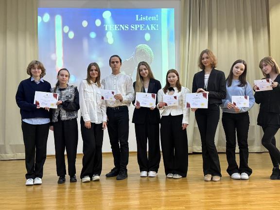 28.12.2025. Listen! Teens Speak! Навык говорения является важной частью изучения иностранного языка. Развивая говорение, ученики совершенствуют не только произношение, но и беглость речи. Более того, этот вид деятельности способствует улучшению коммуникативных навыков, в том числе и на родном языке. В рамках «Декады эрудитов» в школе прошёл конкурс ораторского мастерства на английском языке «Listen! Teens Speak!» среди учеников 10 класса. Участники обсуждали актуальные проблемы, предлагали пути их решения и высказывали собственное мнение. Среди тем, представленных на конкурс, были: «The Tretyakov Gallery», «Cringe Culture: Why Is It So Important to Be Judged Mental», «Testing on Animals» и многие другие. По итогам соревнования жюри определило победителей и наградило участников дипломами и сертификатами.