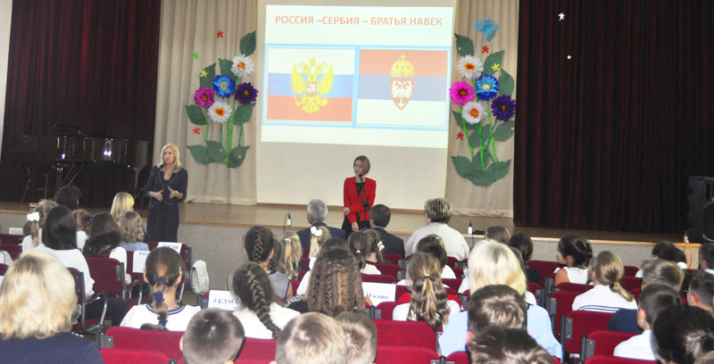 09.10.2019. КУРСЫ СЕРБСКОГО 9 октября в нашей школе состоялось торжественное мероприятие, посвящённое второму году изучения сербского языка. В актовом зале собрались те, кто желает изучать язык страны пребывания, и те, кто уже получил определённые навыки, посещая курсы в прошлом году на базе школы. Сербский язык нужен и интересен ученикам и преподавателям из России, ведь находиться в другой стране, не зная языка, сложно. Кроме того, нас объединяет многое, в том числе общая вера, история взаимоотношений наших стран и языковое славянское родство. В школе при Посольстве России в Сербии обучаются сербские дети, которые начинают изучать русский язык ещё с детского сада, любят и ценят искусство и культуру России. Кроме того, у них появилась возможность изучать родной язык в школе, чему ребята и их родители были очень рады. Собравшихся приветствовали Чрезвычайный и Полномочный Посол России в Сербии Александр Аркадьевич Боцан-Харченко, директор школы Сеник Николай Михайлович, представитель АО «НИС-Газпром» Снежана Лакичевич, директор РЦНК Кущенкова Надежда Викторовна, Лилияна Маркович – декан филологического факультета Белградского университета, Бояна Сабо – руководитель Центра по изучению русского языка Белградского университета. Директор школы Сеник Николай Михайлович сообщил об организации курсов сербского языка, о длительной подготовке, о спонсорах этого значимого проекта. Он выразил искреннюю благодарность Посольству России, меценатам из АО «НИС-Газпром», Русскому Центру науки и культуры, представителям Белградского университета за поддержку в таком важном деле, как развитие дружбы Сербии и России. Чрезвычайный и Полномочный Посол России в Сербии Александр Аркадьевич Боцан-Харченко поблагодарил всех, кто принял живое участие в таком полезном для взаимоотношений двух стран проекте. Он отметил особую значимость этого начинания, ведь доброе, уважительное отношение к стране пребывания очень важно для подрастающего поколения. Это позволяет укрепляться росткам дружбы, появляющимся там, где есть взаимопонимание и взаимное общение. Очень подробно о подготовке курсов сербского языка, о значении этого мероприятия с благодарностью к организаторам, ученикам и педагогам выступили остальные гости мероприятия. Иванова Мария, ученица 9 класса, в качестве символа дружбы двух народов прочитала поэтическое вступление к поэме А.С. Пушкина «Руслан и Людмила» на сербском языке. Всех приятно удивило зажигательное исполнение хореографическим коллективом «Росинка» (художественный руководитель Точинская Ю.И.) национального сербского танца «Коло». Единодушие, которое царило в зале, еще раз подтвердило убежденность всех присутствующих в необходимости изучения сербского языка, его значимости не только в передаче знаний, навыков, стереотипов поведения, но и в качестве своеобразного потенциального символа социальной солидарности всех говорящих на данном языке.