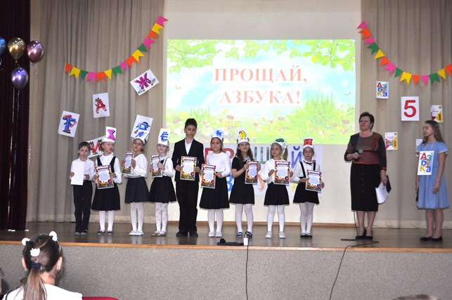 3.03.2024. Прощание с Азбукой в 1 классе 1 марта в начальной школе прошел традиционный, всеми любимый праздник для первоклассников «Прощай, «Азбука!» Интересным и увлекательным стало для всех путешествие на корабле «Победа» на острова «Алфавит», «Сказки», «Пираты». Самые маленькие школьники с радостью продемонстрировали свои таланты перед родителями и гостями, показывая сказку «Буква Й». Новая для первоклассников книга «Литературное чтение» познакомила ребят с правилами обращения с учебниками, проверила, любят ли они сказки. Королева букв убедилась в том, что ребята знают все буквы алфавита. На празднике звучали стихи и песни. Были и музыкальные поздравления от учащихся начальной школы. Активное участие в празднике приняли ученики 5 класса. Директор школы Мещеряков Юрий Владимирович поздравил первоклассников, вручил им удостоверения «Азбуку изучили». Он отметил, что алфавит - это ключ к изучению разных предметов, пожелал ребятам успехов в учёбе. Вот так весело первоклассники расстались с «Азбукой», чтобы ещё веселее сказать: «Здравствуй, мир книг! Здравствуй, мир знаний!»