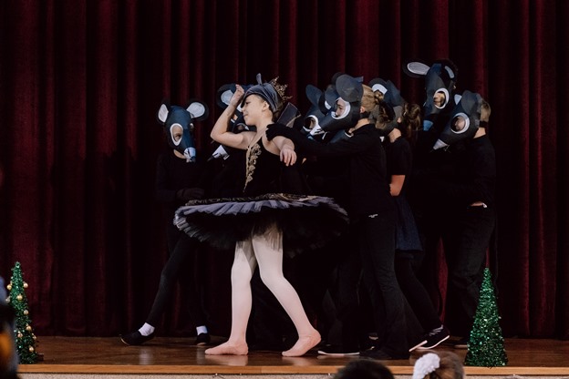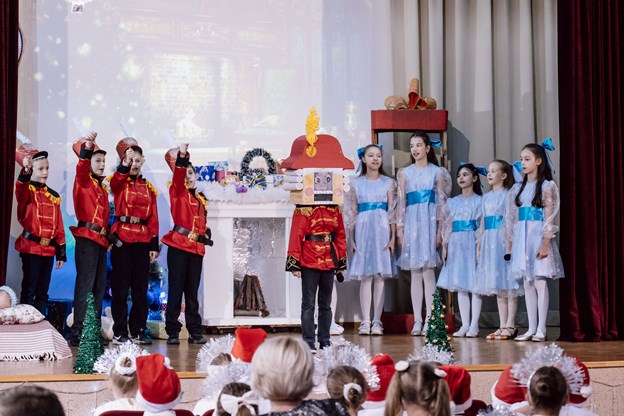 21.01.2025. Театрализованное представление-мюзикл ''Щелкунчик''. 27 декабря состоялись новогодние праздники для всех ребят нашей школы. Началось празднование с театрализованного представления-мюзикла «Щелкунчик». Ребята долго и усердно готовились к премьере, поэтому результат получился восхитительный. В спектакле участвовала вся начальная школа и ребята из среднего и старшего звена. Покорили зрителей милые ангелочки, маленькие снежинки и снеговики из 1 класса, замечательные герои Мари и Франц с крестным Дроссельмейером, ожившие по волшебству куклы и солдатики с их предводителем Щелкунчиком. Ребята из школьного хора проникновенно спели гимн Рождеству «О, Ёлочка!». Второклассники слаженно и талантливо сыграли мышиное войско во главе с королевой Мышильдой. И поэтому отрицательные персонажи очень запомнились публике. Финальную песню исполнял весь зал вместе с Дедом Морозом и Снегурочкой. И конечно же, все с удовольствием водили хороводы, участвовали в конкурсах и получали подарки.