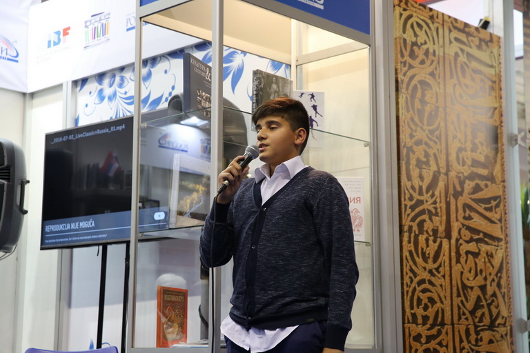22.10.2017. «ЖИВАЯ КЛАССИКА-2017» 22 октября в 14.00, в рамках работы Российского стенда на Международной Книжной ярмарке в Белграде, состоялся национальный финал конкурса юных чтецов «Живая классика». 18 участников из нашей школы и 8 участников из других учебных заведений Сербии читали фрагменты и целые прозаические произведения Михаила Зощенко и Марины Москвиной, Виктора Драгунского и Алексея Жвалевского, Ивана Тургенева и Рувима Фраермана, Елены Черкасовой и Бориса Васильева, конечно же, Александра Пушкина и многих других. Все участники творчески и ответственно подошли и к выбору костюма, и подбору текста. Видно было, что готовились к выступлению целыми семьями. Зрители радушно принимали чтецов: то плакали над монологом Дарьи Огурцовой, то отправлялись в Дедоморозовку с Кочовичем Николой, то с Машей Борисовой делали домашнее задание по математике, то с Явораном Огненом узнавали об истинной правде, то с Артёмом Зиновенковым переносились в чрево Парижа, с Анастасией Стойкович рассуждали о замужестве дочери её героини, были покорены выступлениями Иры Исраэлян, Арсения Станковича, Татьяны Ершовой и многих других ребят. Детский задор и непосредственность, взрослые эмоции и переживания, слёзы радости и горечь поражения – все смешалось на Конкурсе. На сегодняшний день «Живая классика» является самым масштабным литературным проектом, и мы рады, что тоже оказались причастными к нему. Кроме того, все три победителя – ученики нашей школы. Это незабываемый Григорий Точинский в образе Павла Александровича Томского из «Пиковой дамы» А.С. Пушкина, трогательная и нежная Ксения Киронос в образе Лизы Бричкиной из повести «А зори здесь тихие» Б.Л. Васильева, задорная, бойкая и артистичная Мария Иванова в образе Марыськиной из рассказа А.Т. Аверченко «Преступление актрисы Марыськиной». Они приглашены на международный финал конкурса в МДЦ «Артек». Всем участникам вручены памятные дипломы и подарки. Второй финал состоится весной, будем готовиться, желаем всем участникам удачи. Спасибо организаторам и Президенту Фонда конкурса Марине Валерьевне Смирновой.
