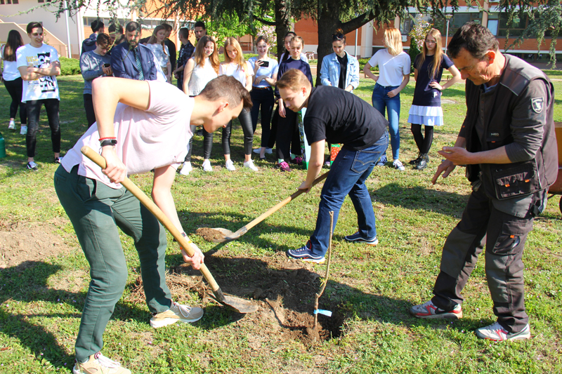 19.04.2019. ШКОЛЬНЫЕ ТРАДИЦИИ В пятницу 19 апреля в нашей школе прошло важное традиционное мероприятие - весенняя посадка саженцев выпускниками. Эта акция проводится для того, чтобы ученики смогли внести посильный вклад в озеленение территории школы, оставить о себе добрую память и продолжить традицию добрых дел. Посовещавшись, директор школы Сеник Николай Михайлович, классный руководитель Большаков Владимир Сергеевич, ученики 11 класса и их родители выбрали для посадки плодоносящие деревья: и вкусно, и красиво. К мероприятию все отнеслись очень ответственно. На территории учебного заведения садовником Радомиром Радоничем были выбраны наиболее удачные места для посадки. Соблюдая технологию, ученики высадили пять деревьев: шелковицу, магнолию, сливу и две черешни. Такие деревца очень красиво цветут, поэтому будут радовать нас и весной, и осенью, когда созреют ароматные фрукты и ягоды. Пусть эти посадки приживутся, вырастут и подарят людям радость и здоровье. Планету будем украшать прекрасными садами, Зелёными лужайками и травными лугами, Не будем засорять её и портить колорит, Вернём родному Дому мы первозданный вид! Теперь, возвращаясь в школу уже в качестве гостей, наши выпускники будут видеть, что их помнят, что здесь осталась частичка их тепла и доброты, которая радует всех окружающих. Большое спасибо вам, ребята!