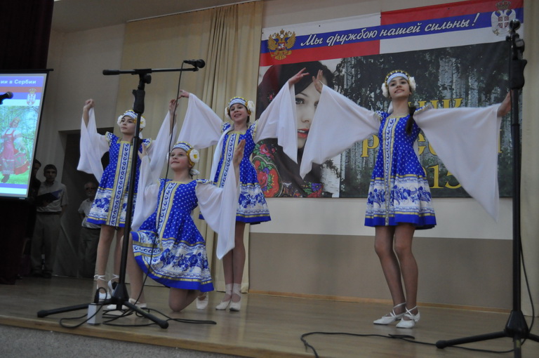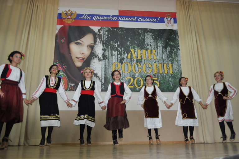 24.04.2015. «ЛИК РОССИИ - 2015» 24 апреля двери нашей школы распахнулись перед педагогами и учениками 29 сербских школ, которые приняли в этом году участие в олимпиаде. В холле второго этажа была развернута выставка работ победителей в номинации «Радуга над Россией», а также выставлены макеты сражений, битв и вооружения, представленные на конкурс. Торжественная церемония открылась поздравлением всех участников директором школы Христокяном А.А. Грамоты и призы в разных номинациях вручали представители Посольства России в Сербии, сотрудники Русского Дома, НИС, издательства «Парус» и руководство и педагоги нашей школы. В концертной программе прозвучали выступления победителей в номинациях «Вокал» и «Декламация», был показан сербский танец в исполнении коллектива из школы Умчари. Не остались в стороне и наши вокалисты и танцоры: хор наших школьников под руководством Айсиной А.Н. открыл концерт песней на сербском языке «Тамо далэко»; танцевальный коллектив «Росинка» под руководством Еремеевой Л.А. показал танец «Русский сувенир»; вокальный ансамбль «Консонанс» (руководитель – Глебов Л.Л.) исполнил песни «Ой, заря, ты зорюшка», «Катюша» и вокально-танцевальную композицию «Коляда».