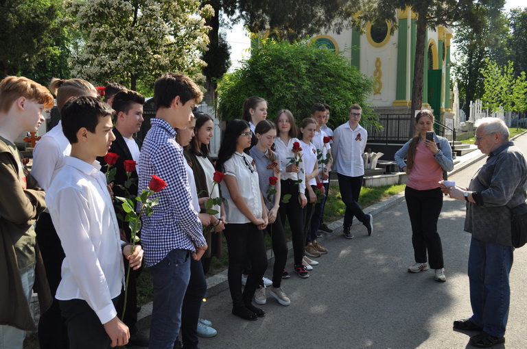 27.04.2018. ВОЗЛОЖЕНИЕ ЦВЕТОВ 27 апреля ученики 8а класса нашей школы во главе с директором Н. М. Сеником и классным руководителем Л. А. Ивановой побывали на очень познавательной экскурсии. Известный в Сербии краевед, историк, потомок русских эмигрантов Алексей Борисович Арсеньев рассказал школьникам о русских захоронениях на Новом белградском кладбище. Особое место в этой экскурсии заняло посещение памятника русским солдатам, погибшим в Первой мировой войне. "Вечная память Императору Николаю Второму и 2 000 000 русских воинов Великой войны…,"- такие слова высечены на монументе. Восьмиклассники отдали дань уважения погибшим героям и возложили к подножию цветы. А.Б. Арсеньев много интересного рассказал о представителях известных в России династий, которые волею судеб оказались в Сербии, многие из них были похоронены на этом кладбище. Рассказывая об этом, экскурсовод упомянул о Николае Генриховиче Гартвиге, выдающемся государственном деятеле, могила которого тоже находится на этом кладбище. Обучаясь в школе при Посольстве России в Сербии, ребята не могли не почтить память российского дипломата. Алексей Борисович мог бы рассказать школьникам ещё много интересного о соотечественниках, живших в Белграде, но, к сожалению, время экскурсии быстро подошло к концу и нужно было возвращаться в школу. Встреча закончилась словами искренней благодарности краеведу А. Б. Арсеньеву, благодаря которому ребята расширили свои познания в истории русско-сербских отношений.