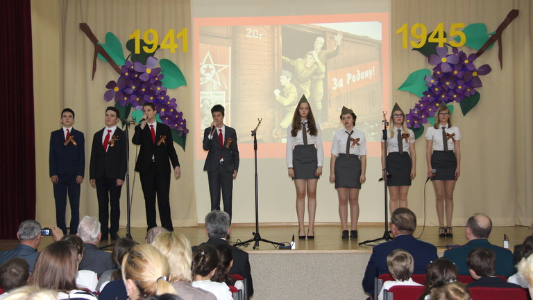 06.05.2016. ПРАЗДНИЧНЫЙ КОНЦЕРТ «ВЕСНА ПОБЕДЫ» Традиционным концертом отметили в нашей школе День Победы. 6 мая в актовом зале школы собрались все, кому дорога память погибших во время Великой Отечественной и Второй мировой войны, кто преклоняется перед мужеством выживших в этой страшной войне. Впервые в этом году во время концерта на сцену поднялись правнуки тех, кто завоевал Свободу для всей Европы, с фотографиями своих прабабушек и прадедушек. Это был наш школьный Бессмертный полк. Среди участников этой акции была и заместитель директора Сторожук Г.А., дедушка которой Трощев Петр Степанович погиб под Сталинградом. Трогательным и в то же время торжественным получился концерт. Звучали не только песни времен войны, но и современные, но оттого ничуть не менее трогающие душу. Их исполнили участники хора «Мелодия» (руководитель – Айсина А.Н.) и ансамбля «Консонанс» (руководитель – Глебов Л.Л.). Праздничное настроение помогли создать танцы ансамбля «Росинка» (руководитель – Еремеева Л.А.). Проникновенным чтением стихов в исполнении ведущих и учеников 10, 9 и 7 классов сопровождались музыкальные номера. Стержнем же концерта стали выступления ребят с короткими рассказами об их прадедушках и прабабушках, героях Великой Отечественной войны. Больше фотографий вы найдете в нашем фотоальбоме!